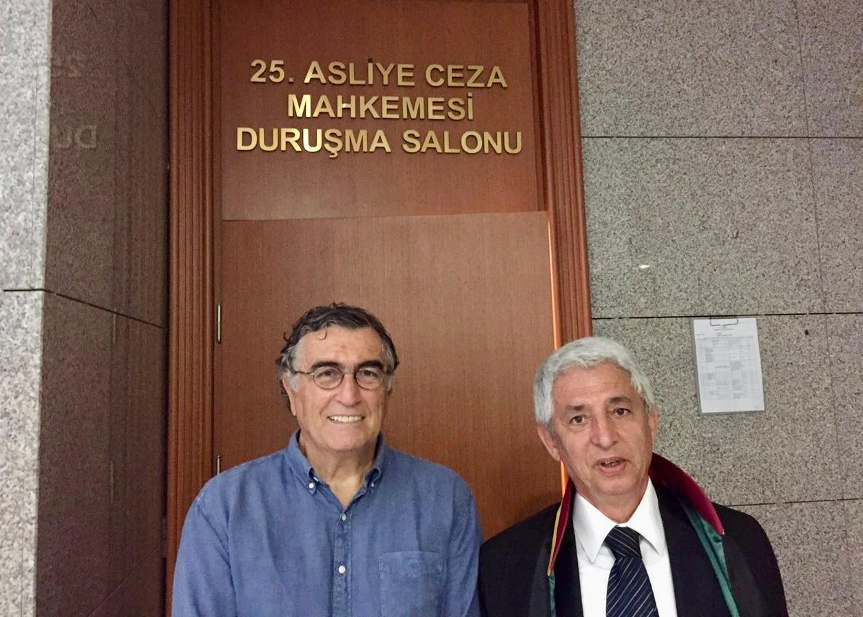 Hasan Cemal, avukatı Fikret İlkiz'le Çağlayan'daki İstanbul Adliyesi'nde