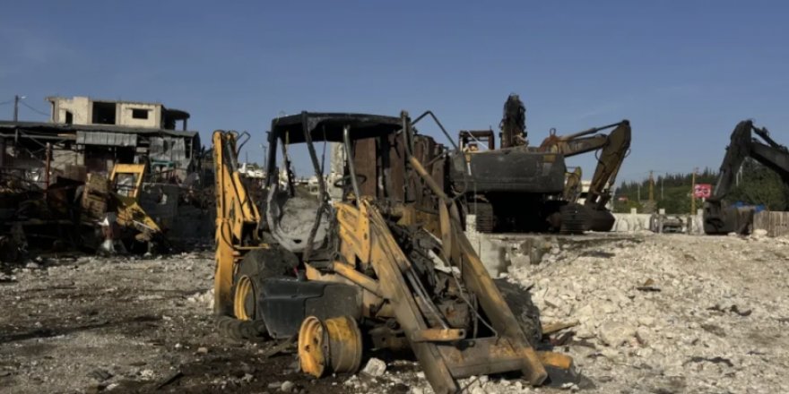 Dört hava saldırısının ardından, 360’tan fazla buldozer, ekskavatör ve diğer ağır iş makinesiyle birlikte bir asfalt ve çimento fabrikası tamamen tahrip oldu.