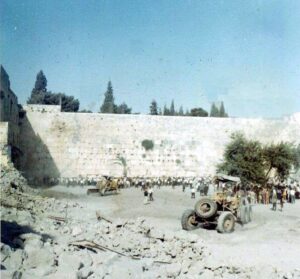 Asıl kırılma, Arap–İsrail 1967 Haziran Savaşı’nın ardından yaşandı. Doğu Kudüs’ün İsrail tarafından işgal edilmesini takiben, Meğâribe Mahallesi, vakıf statüsüne sahip olmasına rağmen, doğrudan hedef alındı. İşgalin hemen ardından, herhangi bir hukuki süreç işletilmeksizin, insanlar zorla yerlerinden edilerek bir gün içinde mahalledeki 138 yapı tamamen yıkıldı. Camiler, medreseler, evler ve dükkânlar buldozerlerle ortadan kaldırılırken, yüzlerce aile zorla yerinden edildi. Bu müdahale, güvenlik ya da askerî zorunluluk gerekçeleriyle açıklanamayacak ölçüde, önceden planlanmış ve bilinçli bir işgal pratiği niteliği taşımaktaydı.